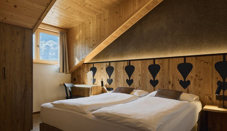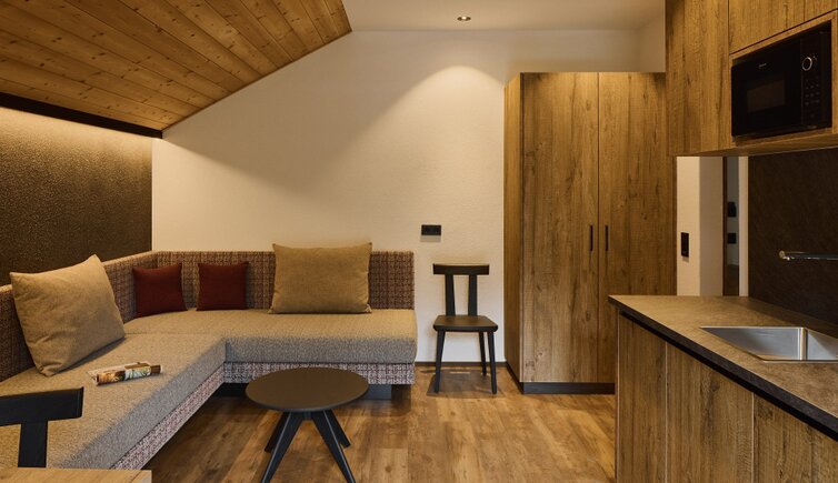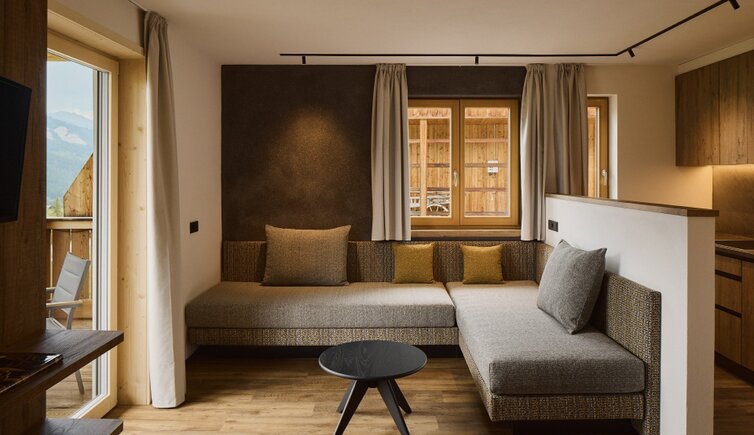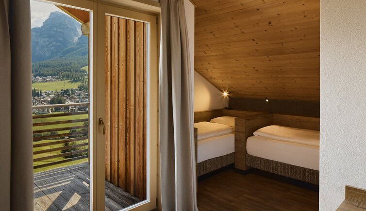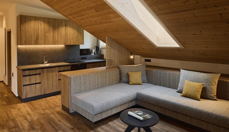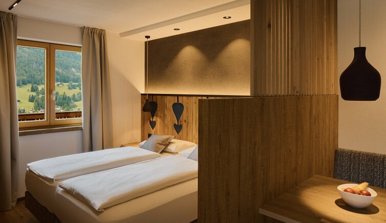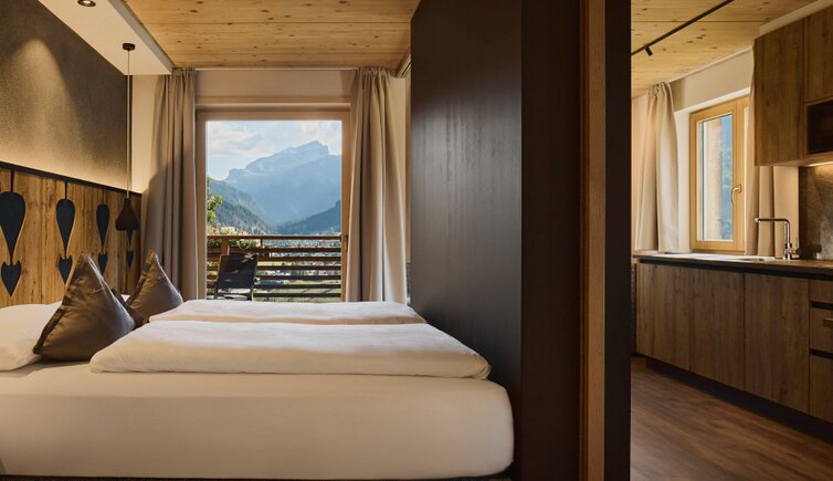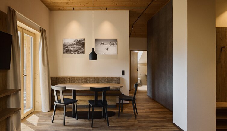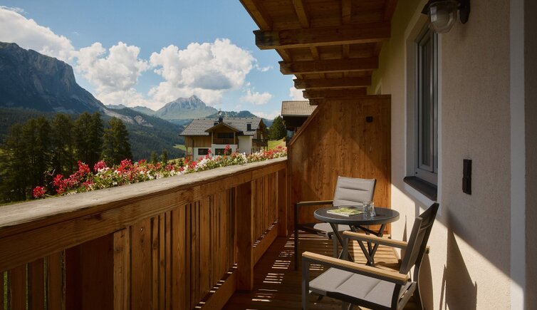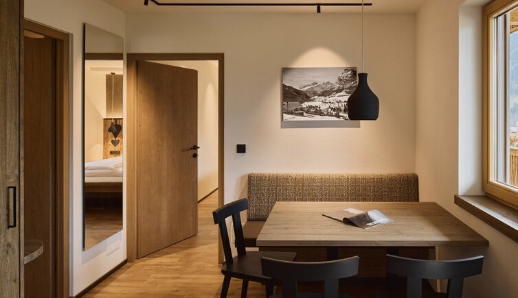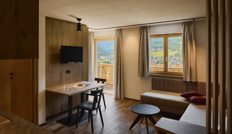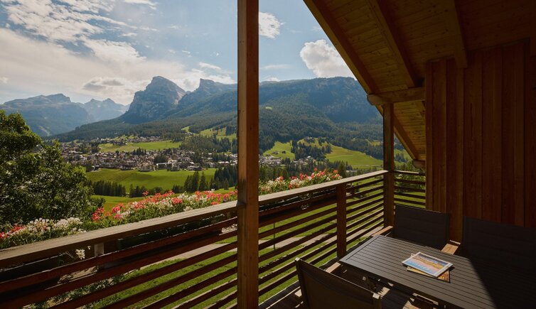 Die Residence liegt malerisch in den Wiesen unterhalb des Kreuzkofels, nur wenige Geh-Minuten von La Villa/Stern entfernt.