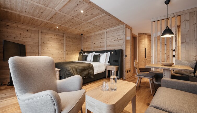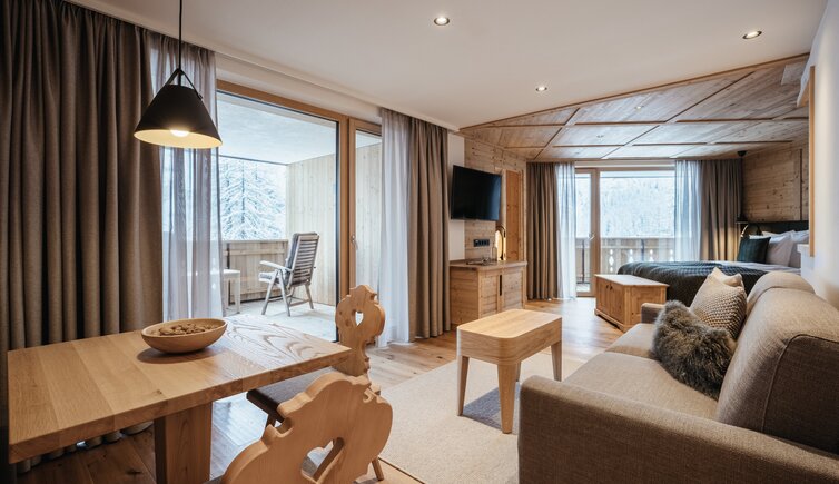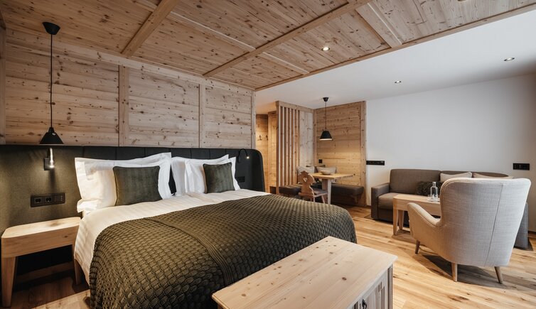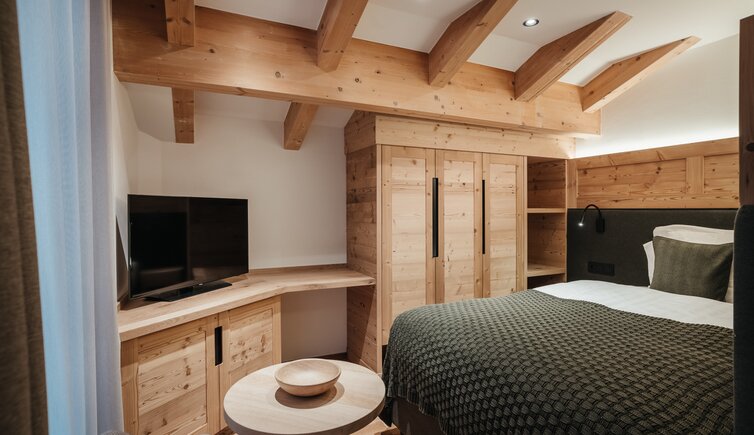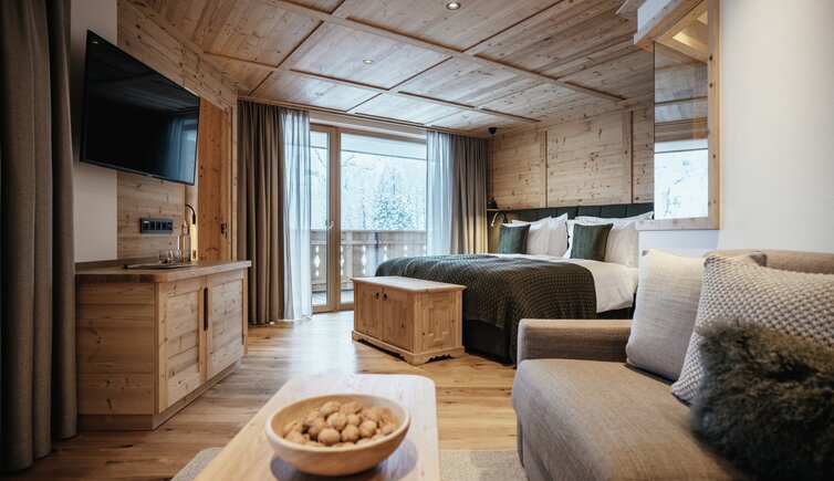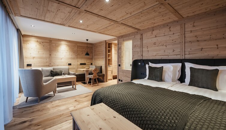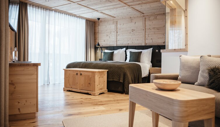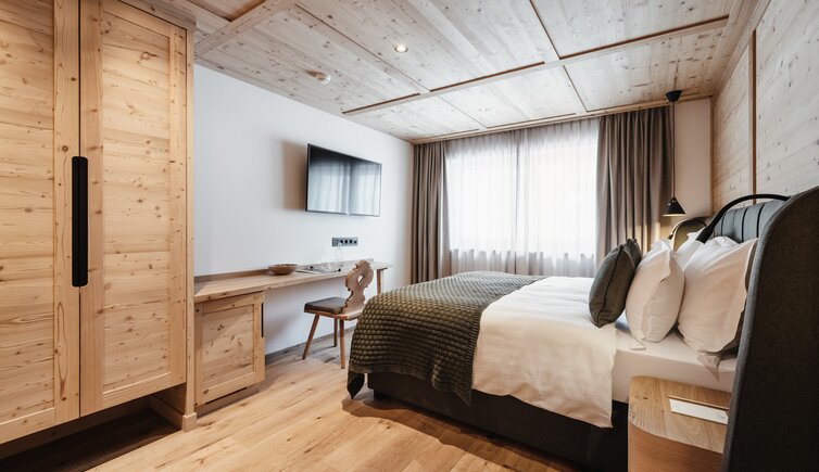Gepflegte, elegant im Tiroler Stil und mit viel Holz eingerichtete Zimmer und Suiten verschaffen Dir den nötigen Raum zum Träumen und Abschalten.