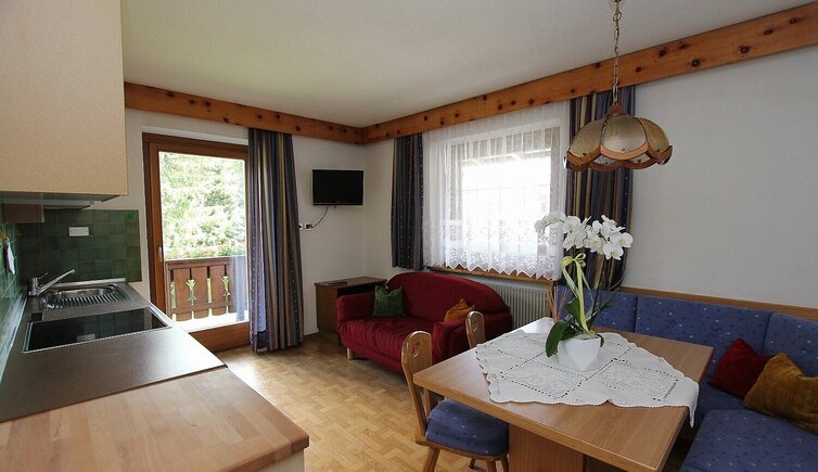 Die Apartments Brüscia befinden sich am Eingang von La Villa, umgeben von viel Grün, in einer sehr ruhigen und sonnigen Lage mit einem herrlichen Blick auf die Dolomiten, Teil des UNESCO-Weltkulturerbes.
