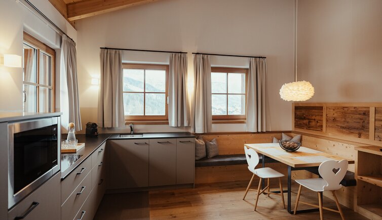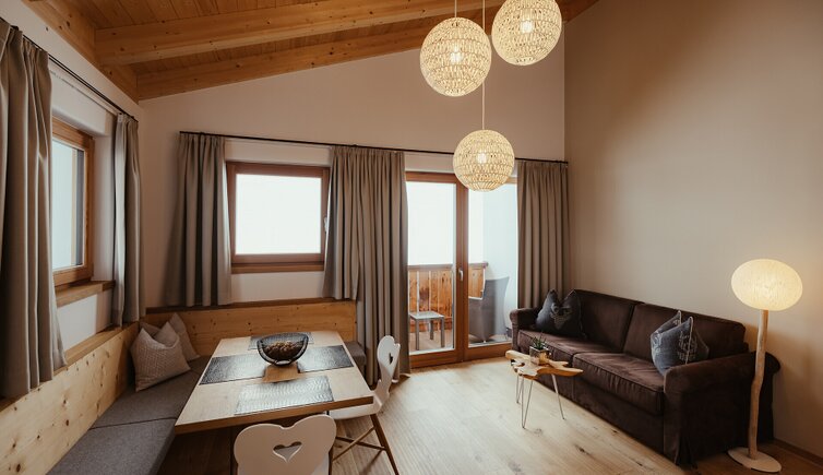 Außen erinnert die Architektur an ein traditionelles Berghaus – behaglich und einladend. Innen entfaltet sich ein durchdachtes Designkonzept, das moderne Eleganz und alpine Tradition harmonisch vereint. Natürliche Materialien und erdige Töne, inspiriert von der umliegenden Berglandschaft, prägen das Interieur und schaffen eine warme, beruhigende Atmosphäre.