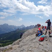 Der Weg kennt eigentlich nur eine Richtung: Nach oben gen Süden. Durch Spalten, Gräben und Höhlen gelangen wir schließlich zur Gipfelkuppe, welche die Sicht über Falzarego und das Gebiet von Livinallongo am Col di Lana öffnet. Der Abstieg erfolgt über die selbe Route. Was uns am besten gefallen hat? Die Felsformationen aus Dolomitgestein, die Aussicht auf die umliegende Bergwelt, das Weltkriegs-Freilichtmuseum und die alpine Flora in ihrer großen Vielfalt. Seinen Namen trägt der Sas de Stria (Hexenstein in ladinischer Sprache) deshalb, weil einer alten Legende nach auf seinem Gipfel eine Hexe gelebt haben soll.