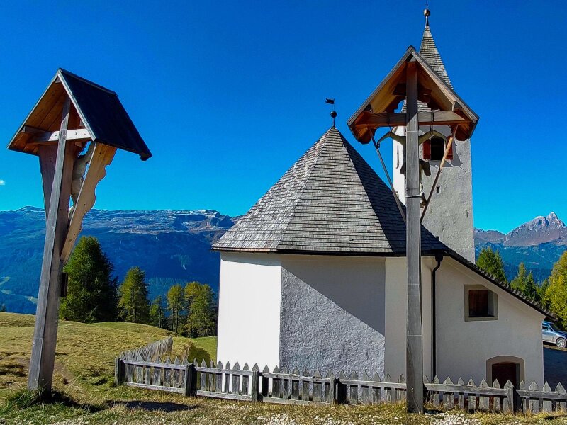 Der Heiligkreuzkofel, auch Sas dla Crusc, Rosskofel, L Ćiaval oder Sasso di Santa Croce genannt, ist ein 2.907 m hohes beeindruckendes Bergmassiv in der Fanesgruppe in den Dolomiten. Es dominiert das Landschaftsbild der Gemeinde Abtei (Badia) und ihres Weilers St. Leonhard.