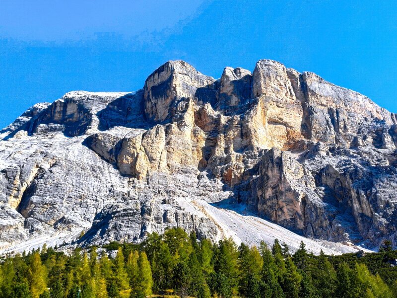 Der 2.907 m hohe Sas dla Crusc (in Ladinisch) ist namensgebend für die mächtige Heiligkreuzkofelgruppe