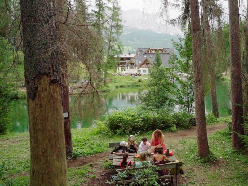 Auf 1.460 m Meereshöhe nahe La Villa befindet sich ein beliebtes Ausflugsziel: der Sompunt See. Die majestätischen Spitzen des Heiligkreuzkofels (2.907 m ü.d.M.) und der Lavarela (3.055 m ü.d.M.) spiegeln sich in seinem Wasser.
