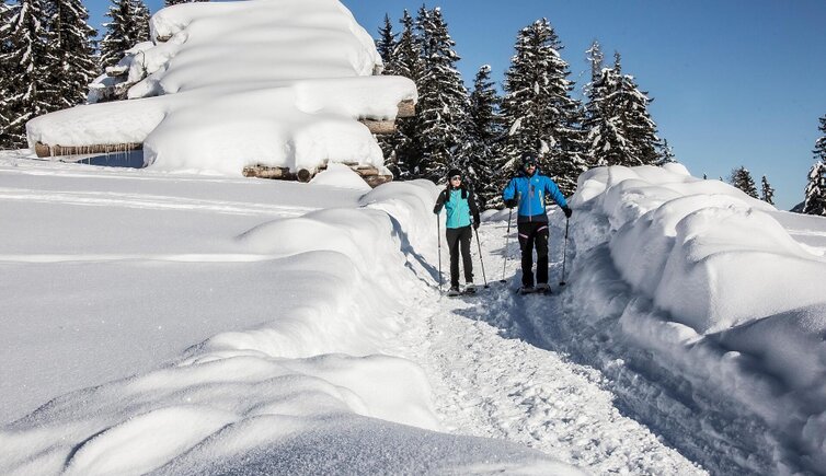 Entdecke den Zauber der Dolomiten UNESCO Welterbe, wo pures Vergnügen und atemlose Begeisterung auf dich warten. Mit Schneeschuhen erlebst du die stille, verschneite Winterlandschaft ganz und genießt dabei die Ruhe der Natur.