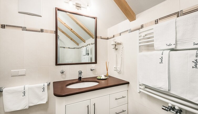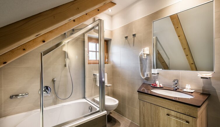 Die elegante Mischung aus Tradition und Innovation, klassischem und modernem Stil, verleihen eine entspannende und wohlige Atmosphäre vereint mit einem unvergleichlichem Blick auf die umliegenden Dolomiten.