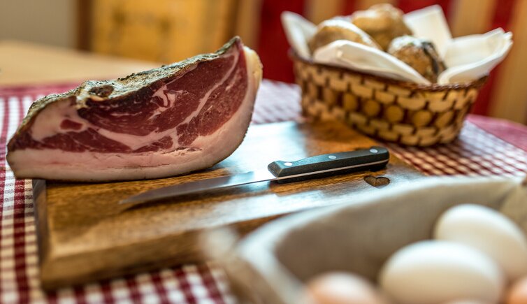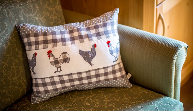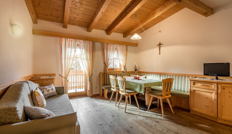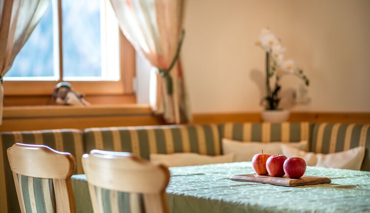 Our farm is located at about 1,600 m a.s.l., in a sunny and peaceful position next to a tiny idyllic village. The magnificent view from our farm across meadows and forests and on the majestic Monte Croce mountain with the Sasso delle Nove, Sasso delle Dieci and Monte Cavallo will enchant you and make your holiday an unforgettable experience. Elmar and his wife Priska, together with their three children Anna and Lena are looking forward to welcoming you to this little paradise.