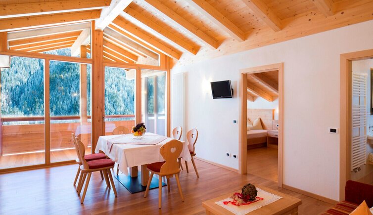 The Ciasa Col Cuch is a small family-run accommodation business. It is situated in a quiet position surrounded by meadows at the edge of the forest. The village centre of La Villa in Alta Badia, in the heart of the Dolomites, is only a few minutes away. The comfortably furnished holiday apartments are equipped with bed linen, towels, dishes, dishwasher, microwave and satellite TV. In the centre of La Villa you will find restaurants, pizzerias, bars, pubs, shops, banks, ski and mountain bike schools, playgrounds, and much more …