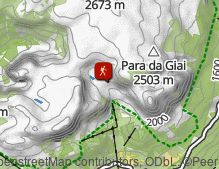 Afterwards we climb the last part in serpentines in eastern direction towards the 2,665 m high peak of the Sassongher, that provides an amazing view of the Val Badia valley, the Sella Group and Mt. Sasso di Santa Croce. Also Colfosco can be admired at our foot. For the way back down, we walk along the route on which we came. You absolutely should be free from vertigo for this tour. We recommend you to take walking poles for the descent, and of course a stop at the Ütia Edelweiss mountain hut, providing a great view on the Sella alpenstock.