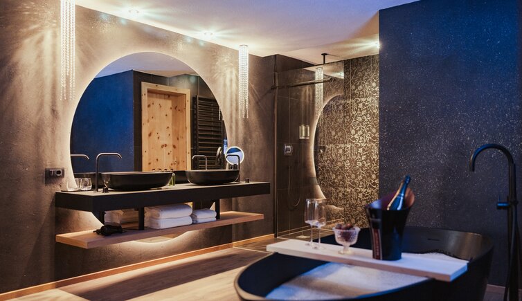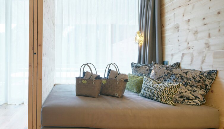 The 3,000 m² wellness area offers a marvellous view on the Dolomites.