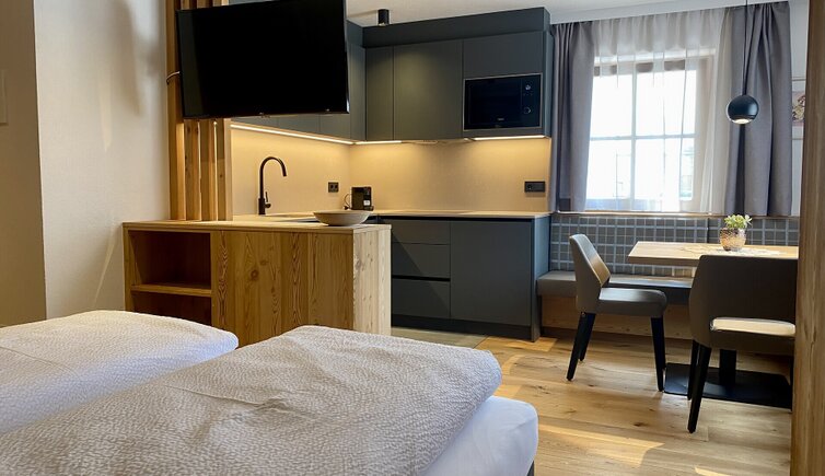 Essendo un po’ fuori dal trambusto del centro del paese, è il posto ideale per le famiglie ed i clienti che cercano soprattutto pace e relax immersi nella splendida natura delle nostre Dolomiti.