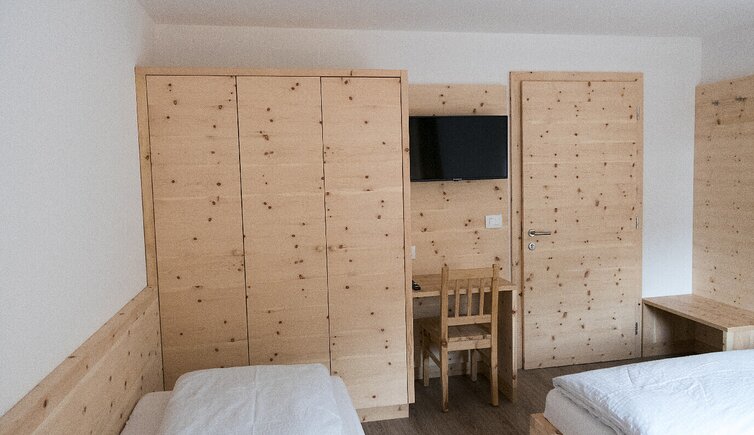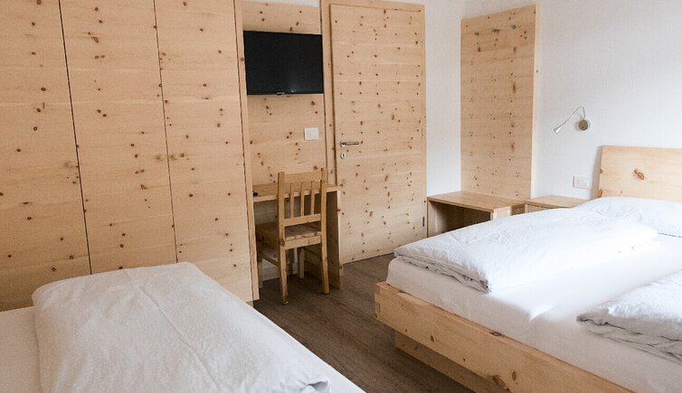 Tutte le stanze sono dotate di bagno con doccia e sono arredate con stile moderno e con legni naturali. In particolare potrete apprezzare il profumo del legno cirmolo che da alla stanza un tocco particolare e rende il vostro soggiorno unico. Inoltre offriamo la possibilità di utilizzare la cucina della sala colazione, dotata di un piano a cottura gas, frigoriferi, microonde e un forno elettrico.