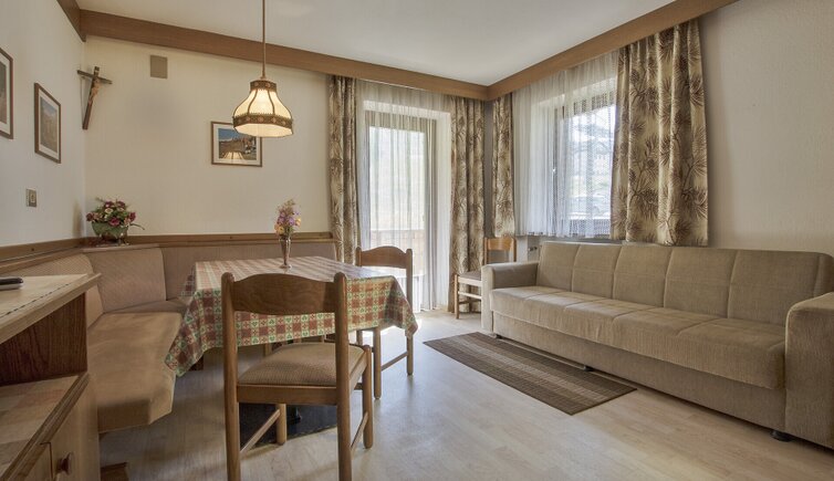 Gli appartamenti, situati in pieno centro a Corvara, e nelle immediate vicinanze degli impianti di risalita, sono completamente arredati, in modo semplice e confortevole.