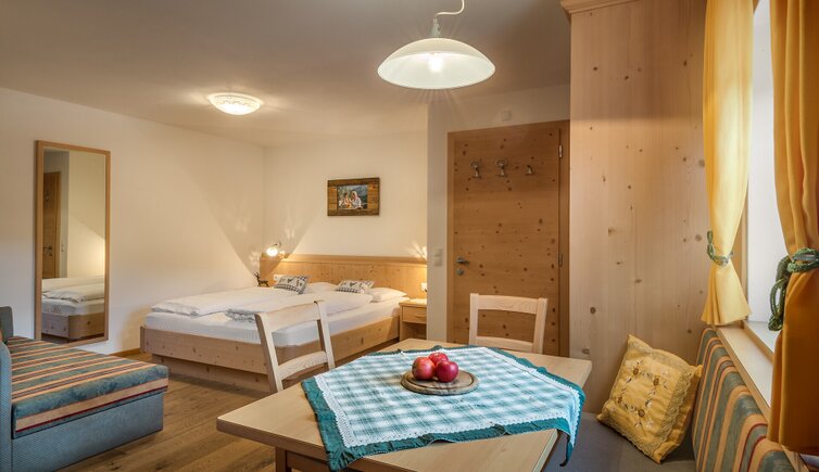Il nostro maso si trova a 1.596 metri di quota, in un posto tranquillo e soleggiato e offre un’incantevole e idilliaca vista su prati e boschi circostanti e sul maestoso Sasso Croce con Cima Nove, Cima Dieci e Cavallo, rendendo le Vostre vacanze indimenticabili. Il proprietario Elmar, con sua moglie Priska e i figli Anna e Lena Vi daranno un cordiale benvenuto.