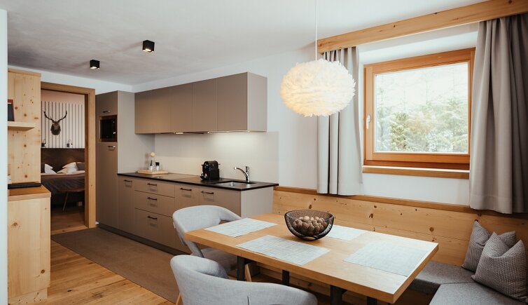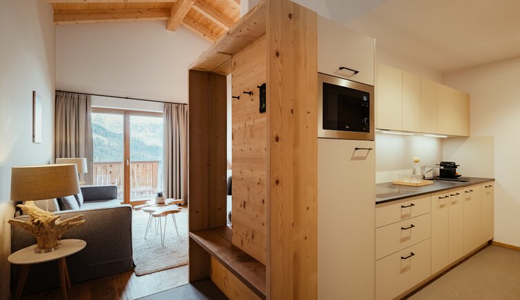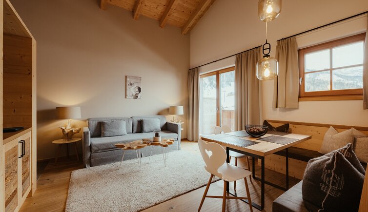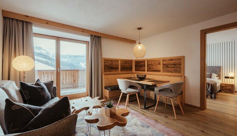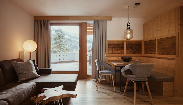 All’esterno, la struttura richiama l’atmosfera accogliente di uno chalet di montagna. Gli interni, invece, si distinguono per un design curato nei minimi dettagli, dove eleganza contemporanea e tradizione alpina si fondono in armonia. Materiali naturali e tonalità ispirate alla natura circostante conferiscono agli ambienti un’atmosfera calda e rilassante.