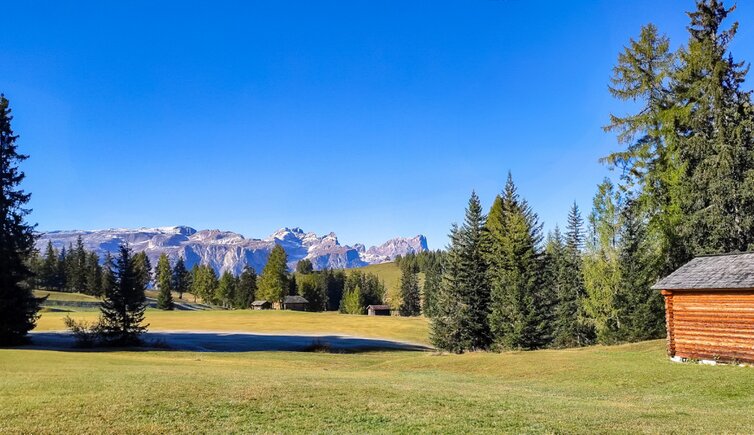 I Prati dell’Armentara (Roda de Armentara) sono situati tra 1.600 e 2.000 m s.l.m. sotto le pareti rocciose del Sasso di Santa Croce