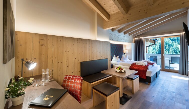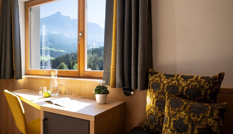 L’hotel offre camere comode ed eleganti, dall’atmosfera di particolare benessere, e una gustosa cucina ladina, che combina elementi della tradizione con la modernità.