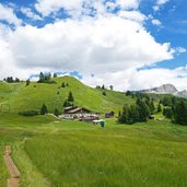Partendo dalla stazione a monte a 2.000 m s.l.m., seguiamo i sentieri n. 4A, 4 e 23, passando per i rifugi Ütia La Fraina, Ütia La Brancia e Ütia I Tablà. Arrivati al Rifugio Piz Arlara, il sentiero n. 30A e poi 30 scende ai prati sul pendio sopra il campo da golf di Corvara. Arrivati all'ultimo tornante, il sentiero di collegamento n. 24 si dirama e sfocia in un sentiero sterrato sotto la Capanna Nera. Seguiamo questo sentiero che sale ai Rifugi La Marmotta e Passo Incisa. Un sentiero attraverso i prati alpini, segnato con il numero 3A, sale poi fino al passo. Da lì scendiamo attraverso il bosco al Passo di Campolongo. L'autobus di linea ci riporta al nostro punto di partenza (consigliamo di consultare gli orari delle corse dal Passo di Campolongo a La Villa!).